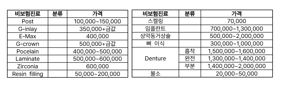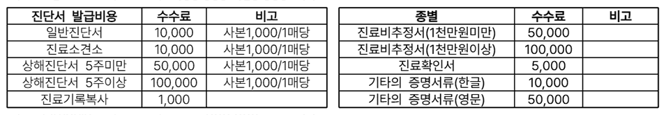 비보험 진료 수가표